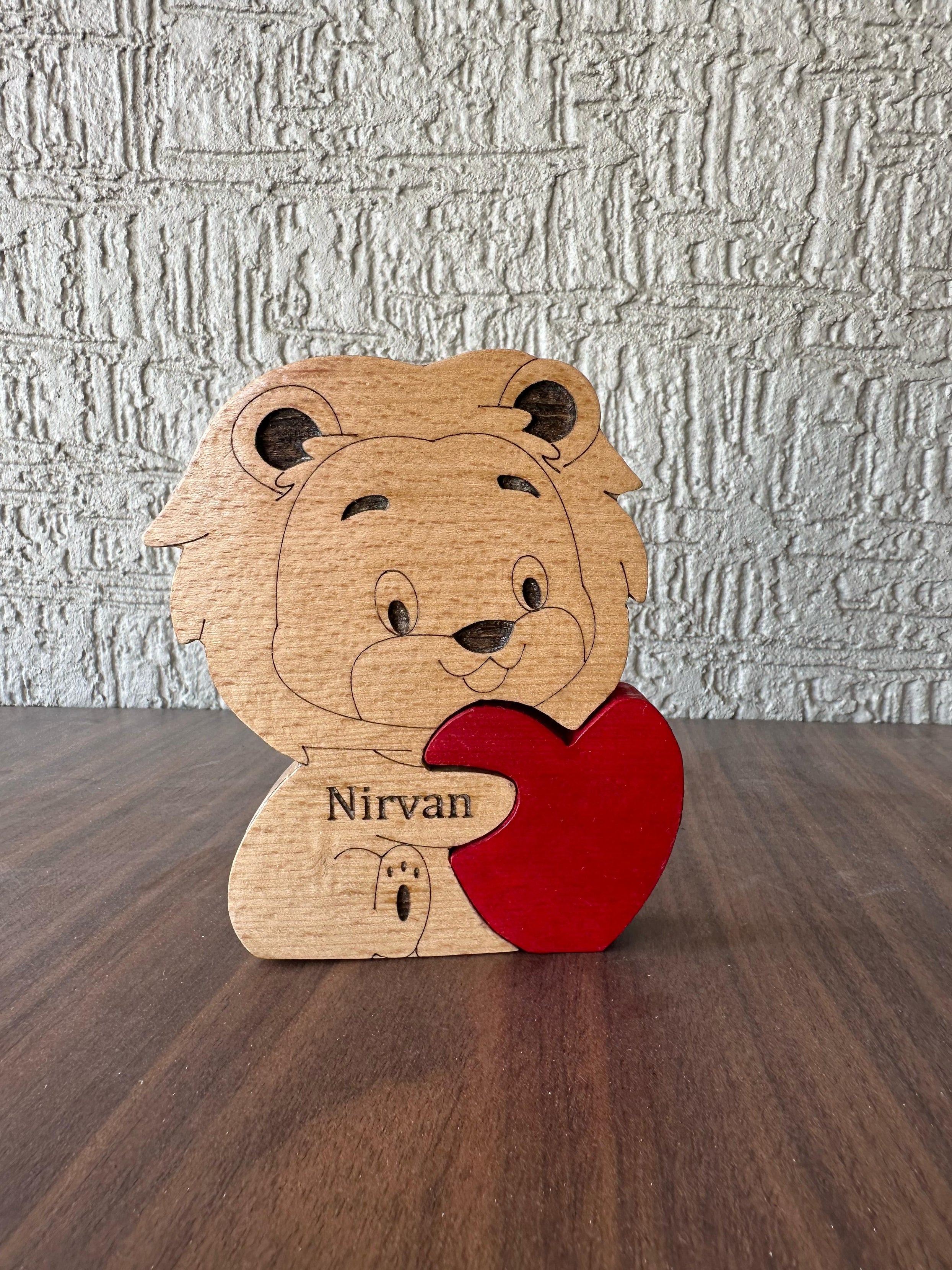 Bring your family bond to life with this beautifully carved Lion Family Wood Puzzle Decor.