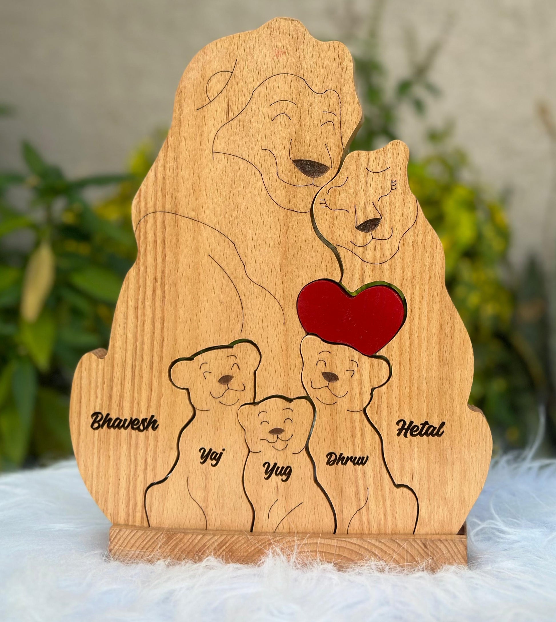 Bring your family bond to life with this beautifully carved Lion Family Wood Lion family of 5- with 3 babies.